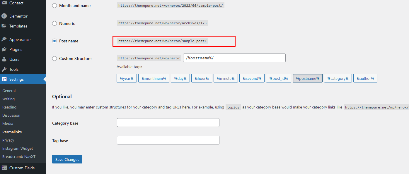 permalink, navigate to Settings -> Permalink and then click on